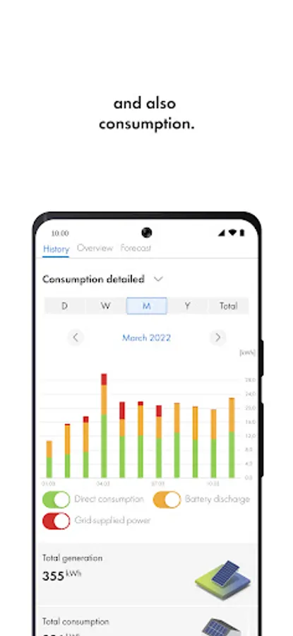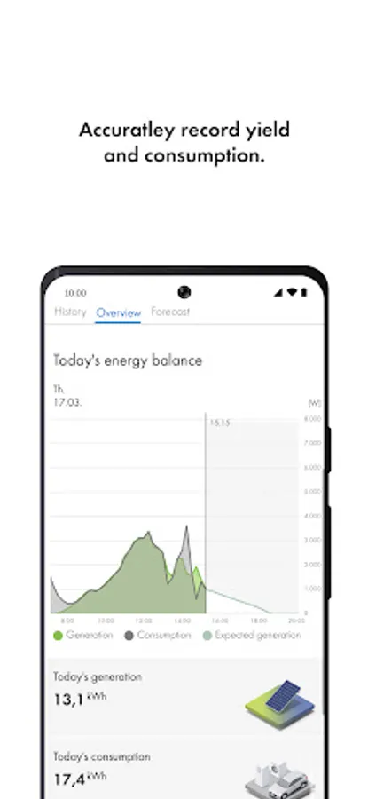 In the optimization area, you can view current forecasts for solar power production. The app shows you how to use your energy even more sustainably. For example, you can automatically utilize your own, self-generated solar power as efficiently as possible for your own needs and reduce your grid-supplied power.