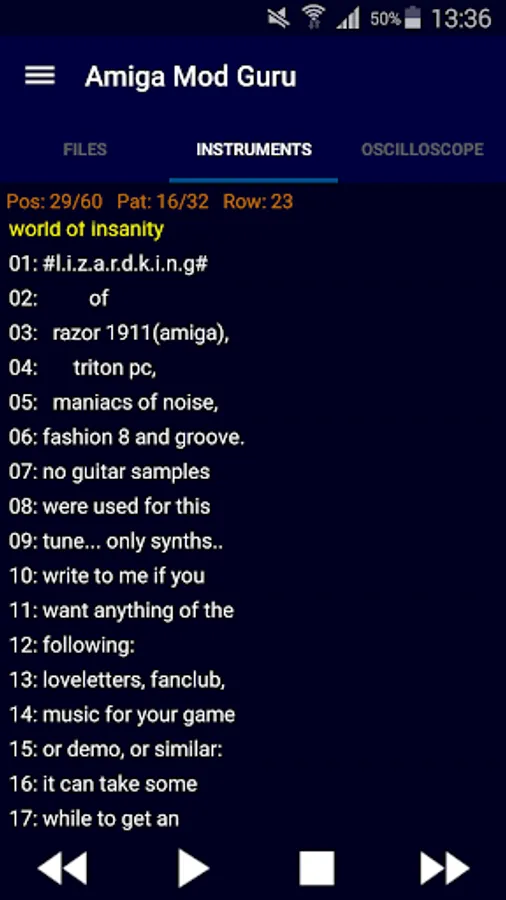 Amiga Mod Guru is a Mod Player for retro Amiga MOD files generated with Protracker, Soundtracker, Noisertracker...