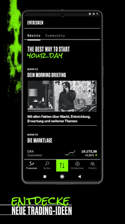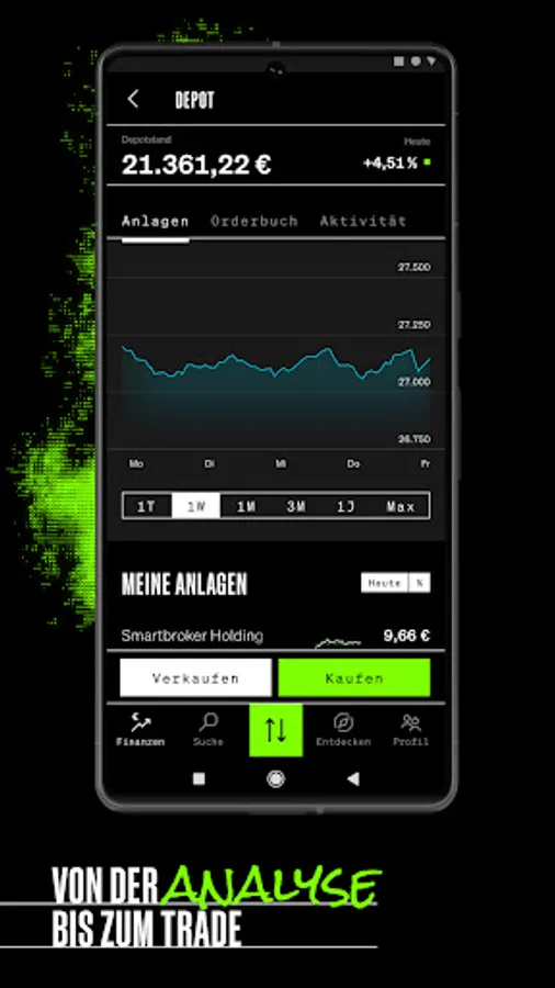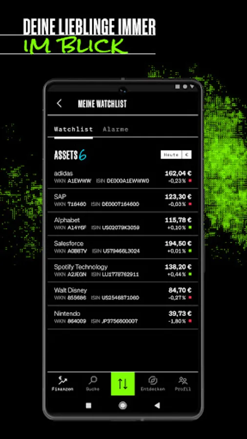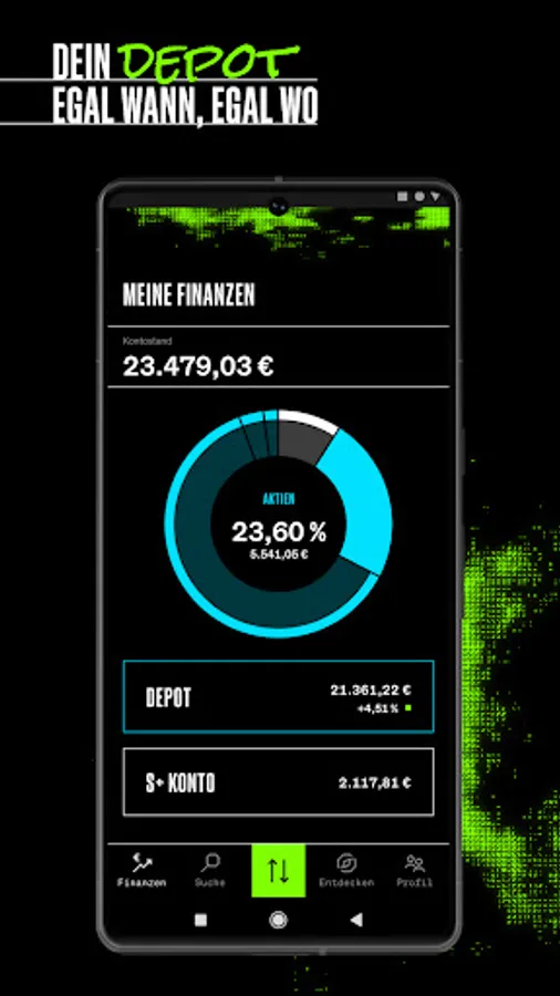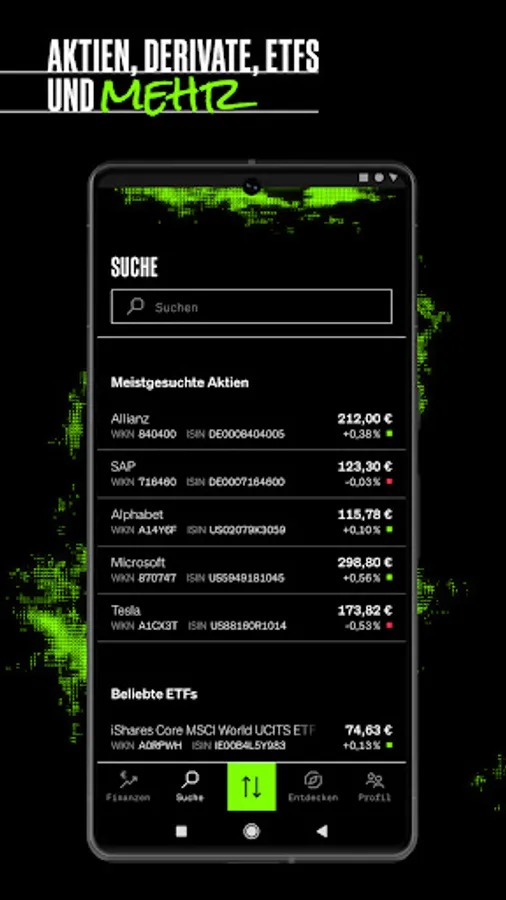 The S+ app offers you more than just buying shares or ETFs: The discover area provides you with the latest news from the financial world and information about your favorite shares. What are current top and flop stocks? Which stocks are hotly debated in the community? And which sectors can you easily add to your portfolio via ETFs? Whether it's a new chart signal, exciting stock market news or important analyst assessments of a share: With the S+ app you can keep your finances up to date. You can trade stocks immediately in the app.