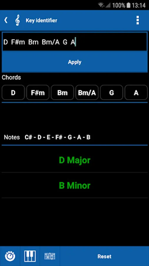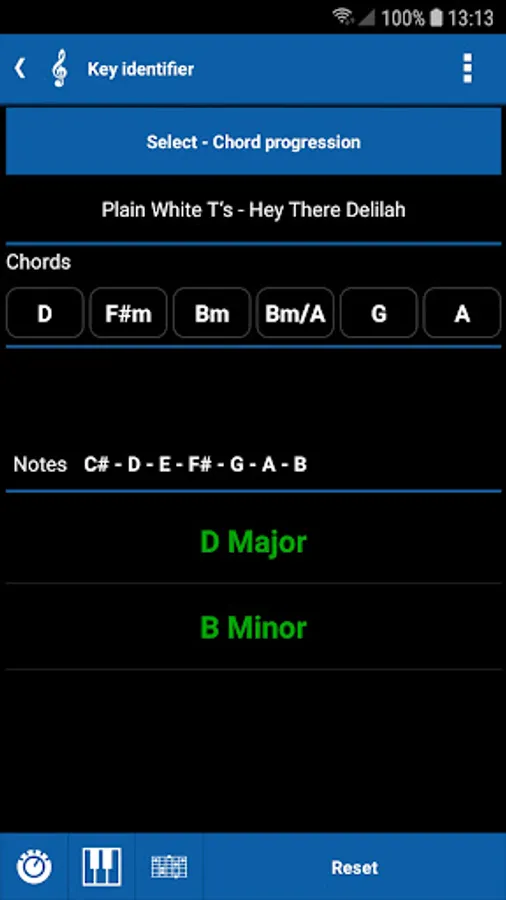 The Song Key Identifier determines the key for a song, a chord progression or an arbitrary set of chords or notes. You can get any song from the greatest internet song catalogues with the s.mart Songbook and the Song Key Identifier determines its key. It will help you to get familiar with music keys and learn to identify music keys.