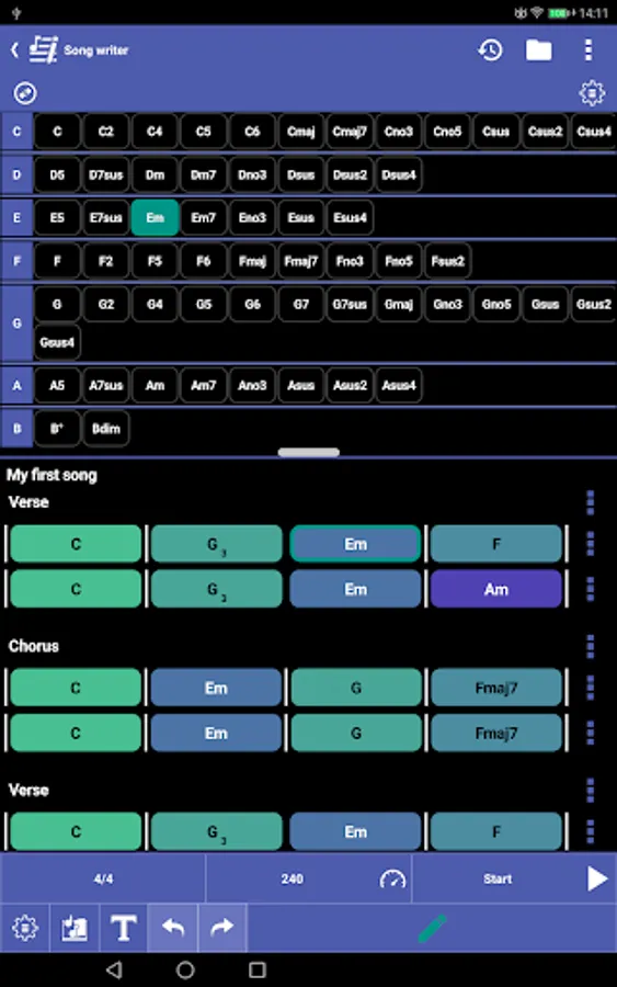Discover a world where songwriting and composing becomes effortlessly enjoyable with the Song Writer. Whether you're a seasoned musician or just starting your musical journey, this app is designed to make the process of writing and arranging songs a breeze.