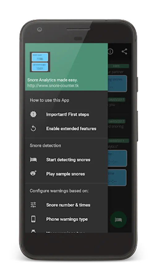 Snore counter is the best way to know how much you snore and at what time. A simple dashboard shows the number with indication of elapsed time from last snore. Push the cells on the screen to watch your snoring profile over the whole night.