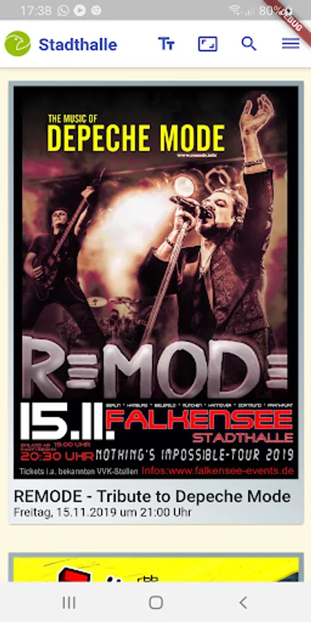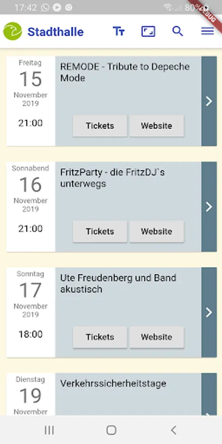 With the App of Stadthalle Falkensee the event program is presented.