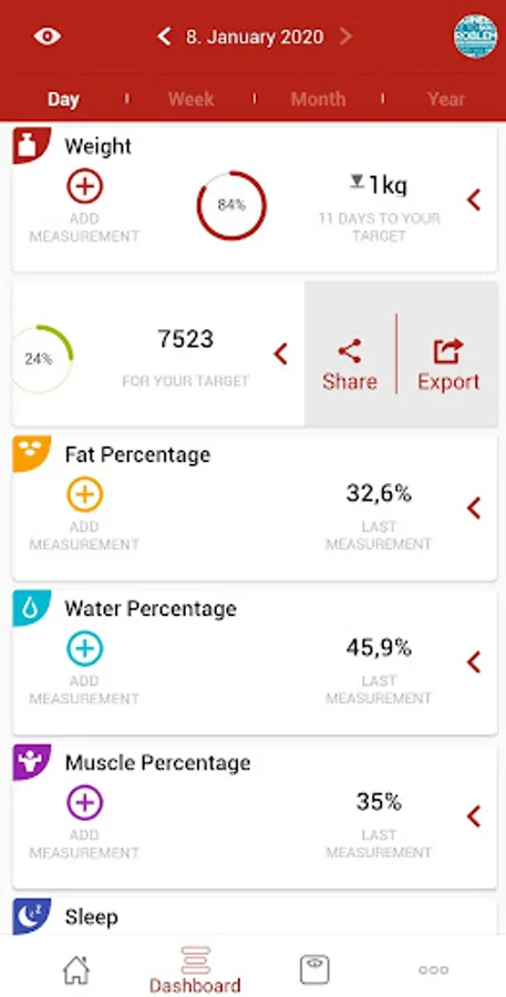 - Set goals and track your progress in steps, distance, calories burned, sleep, weight, BMI and more