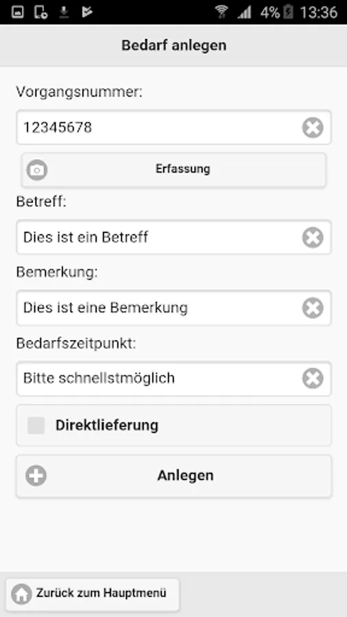 The status of an already reported requirement notification is traceable and color-coded in the app. Likewise, any changes to the requirement notification are transferred back to the app via the KWP main system.