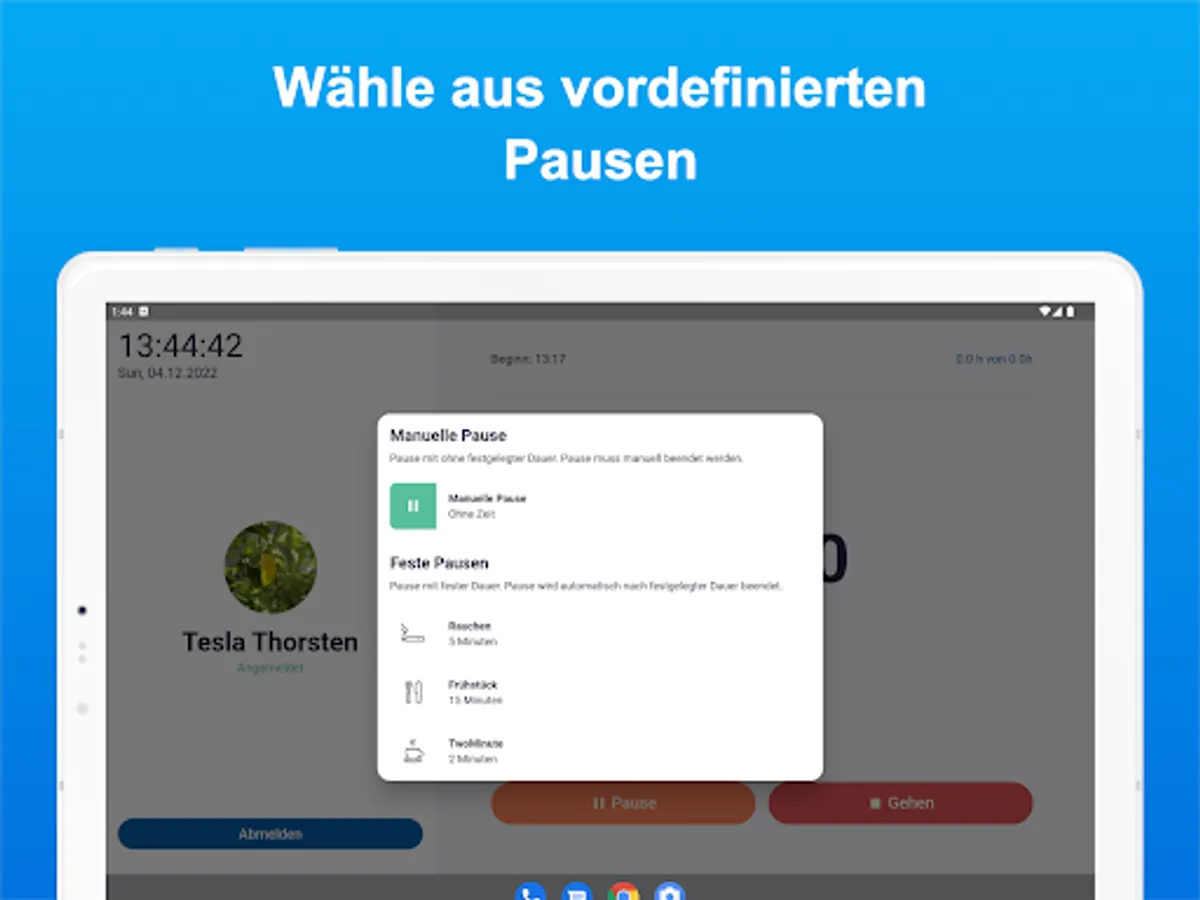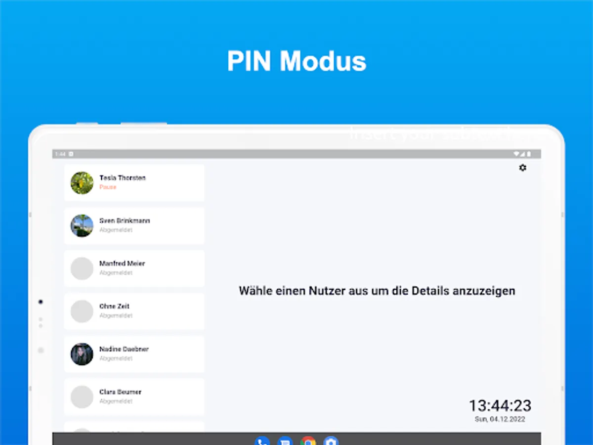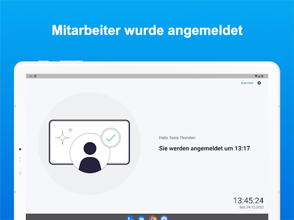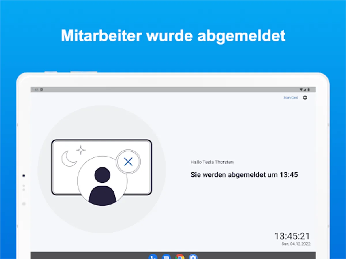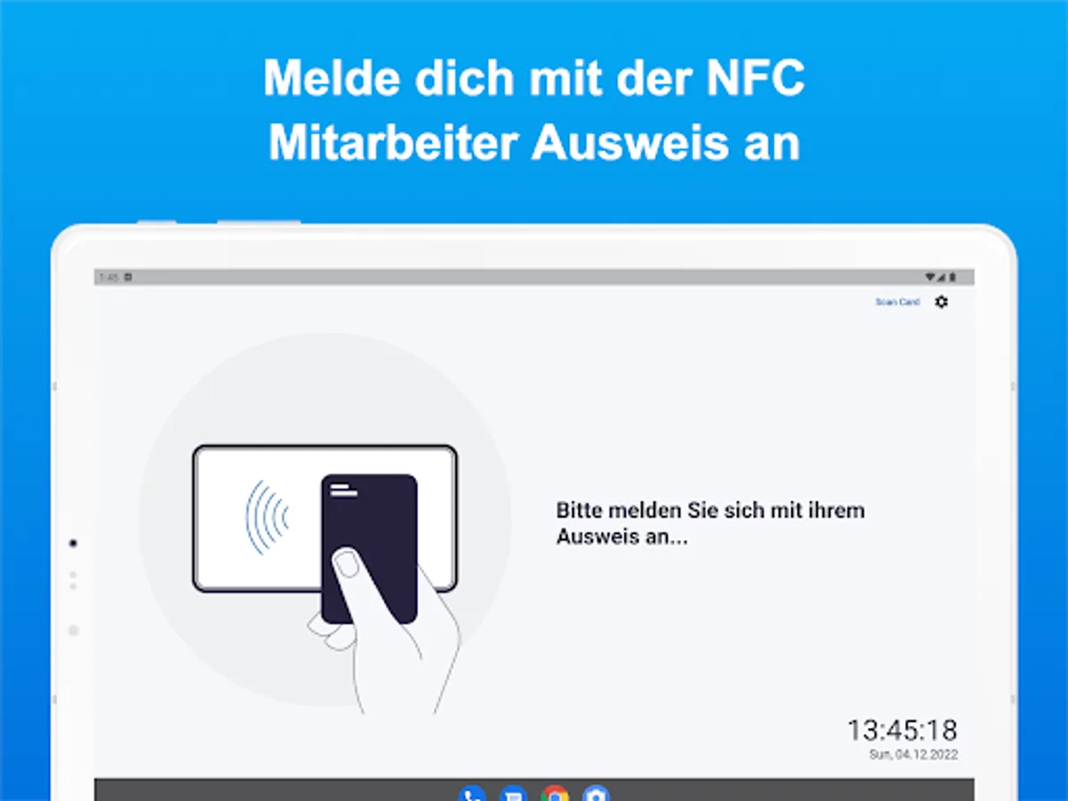 With the terminal app, your employees can easily record their working times via NFC, card or PIN.