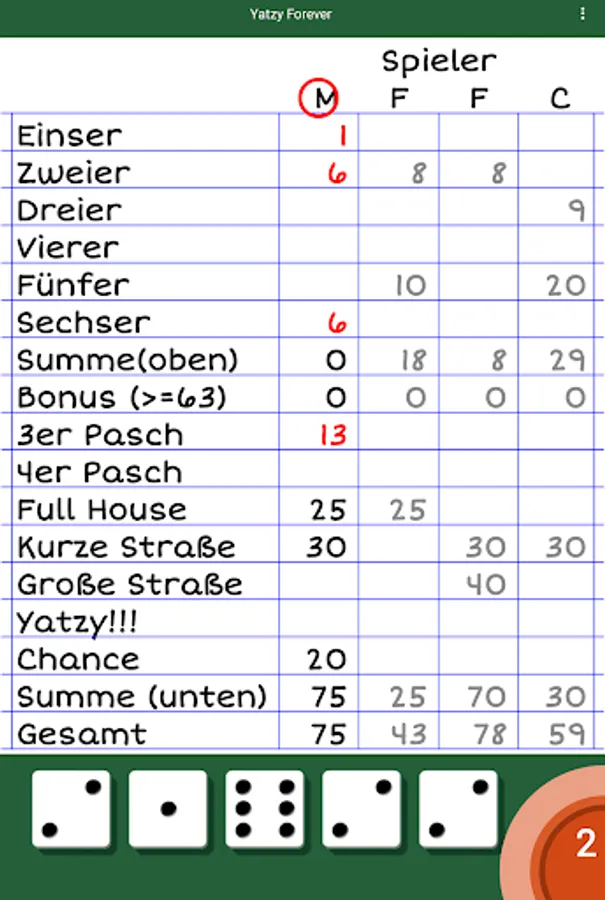 This app, newly developed in 2022, is a dice game that is also known by the names Yahtzee and Yahtzee. It's great fun for the whole family - young and old. 1 to 4 players can compete against each other. All scores are visible during the game. This makes operation child's play. Just tap the dice cup and off you go. In the default setting, you can roll the dice 3 times before you have to decide on a result. With "One throw" you can only throw the dice once. The best game results appear in the leaderboard. The sound can be switched on and off.