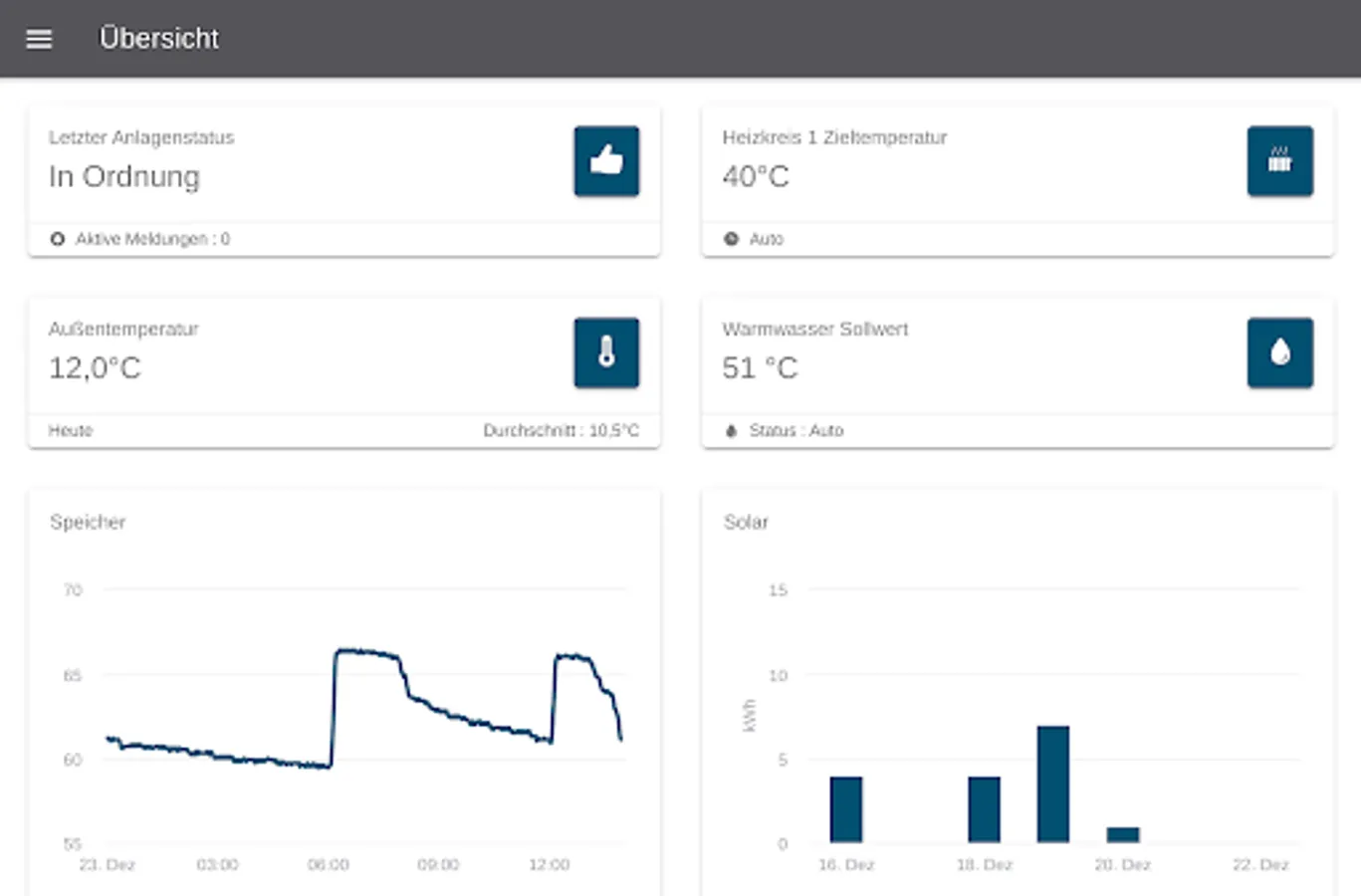 The SolvisPortal provides external access to the SolvisControl 3 for system operators, installers and, if necessary, Solvis customer service. Once connected, all parameters, system diagrams, system information and much more can be viewed over the Internet and easily changed.