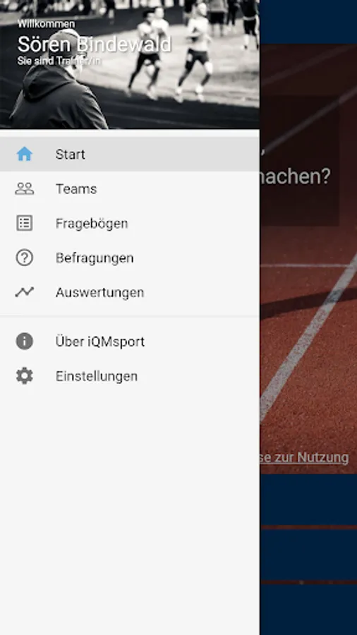 Detailed information on using the individual features (such as "Team management", "Starting a survey" or "View evaluation") can be found in the menu of iQMsport under "Help for iQMsport" and on the Internet at: http://iqmsport.de /