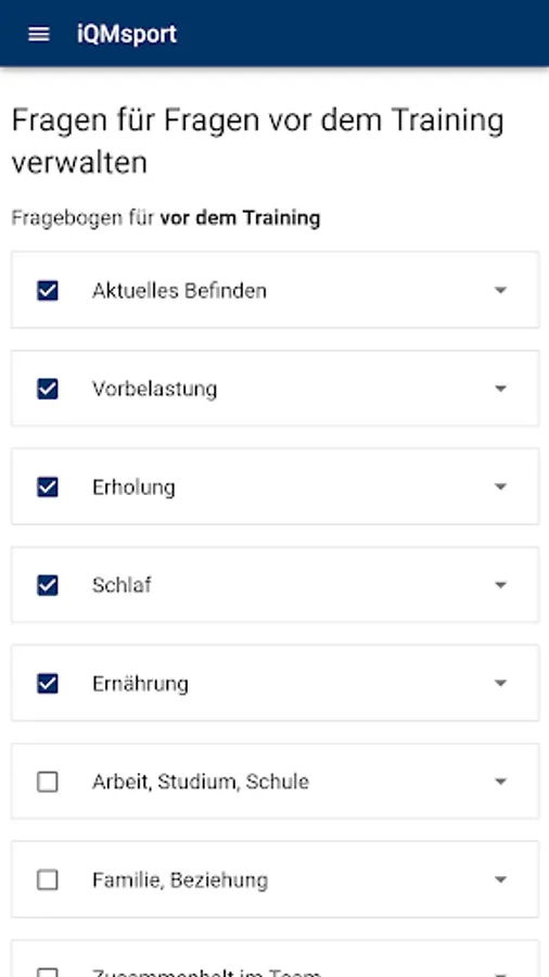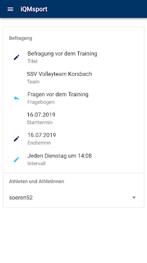 Note: The current version of iQMsport has been discontinued. a. in projects in cooperation with the German Volleyball Association e. V. developed. Therefore, some training factors volleyball specific designed and the assignment of a team is currently formally only for the sport of volleyball possible. Other variants for other sports (groups) are currently being developed.