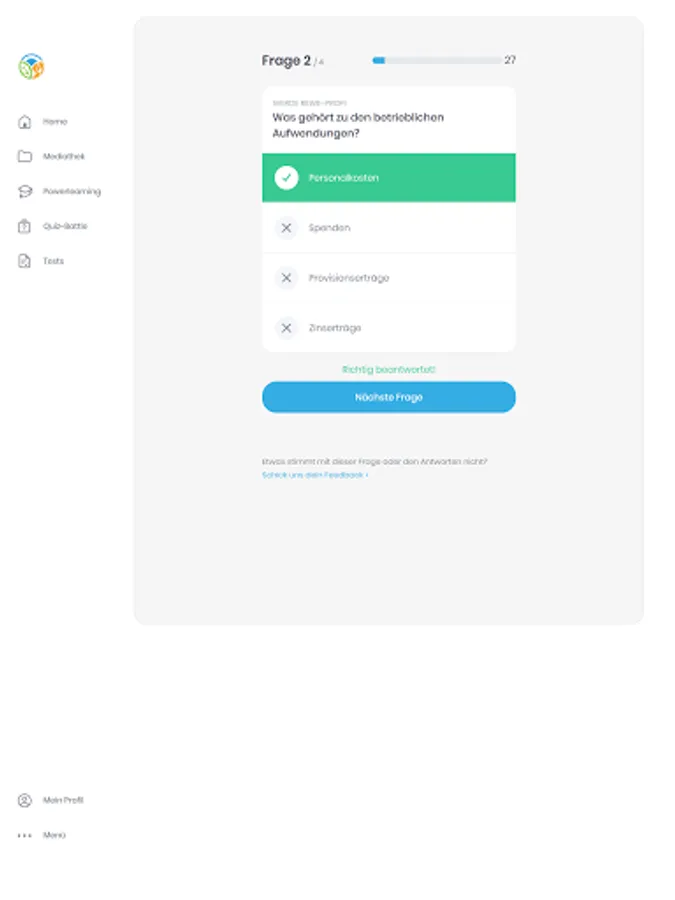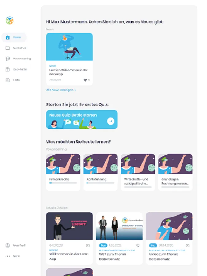 • With the "self-learning / Training" to the possibility that acquired knowledge to check after the Leitner principle