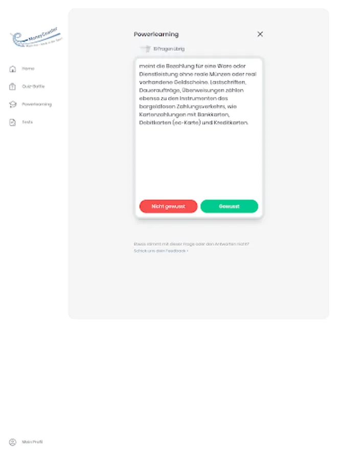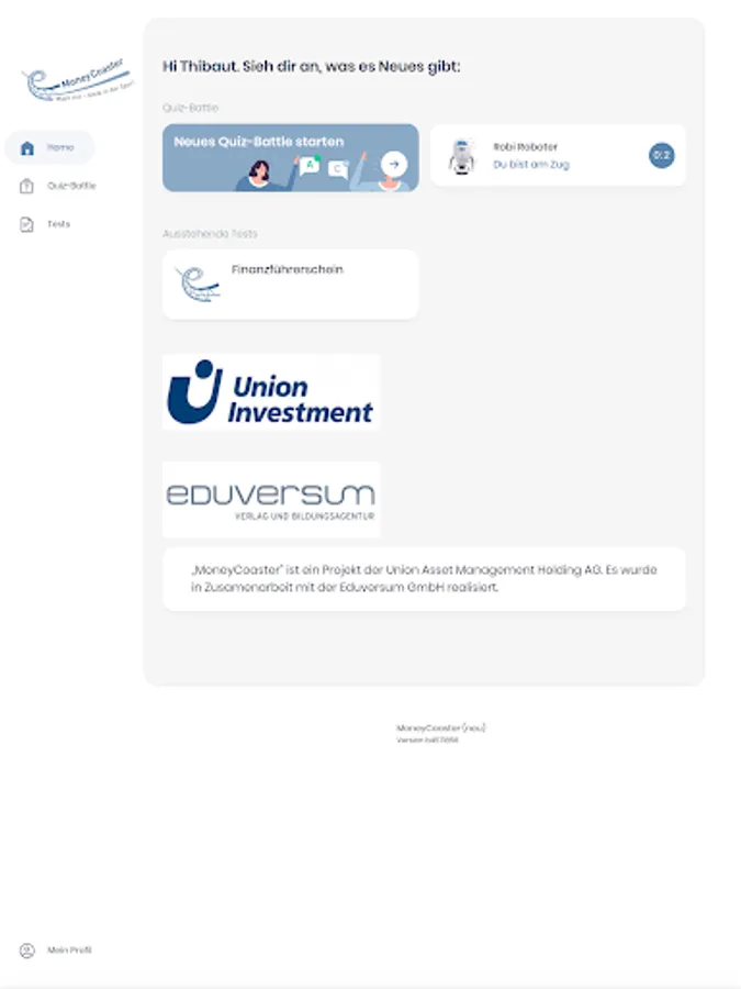 Whether alone, against an opponent or against the Robi financial robot: With the MoneyCoaster Quiz app you can test your knowledge of all aspects of business, money and finance. Still unsure about some questions? No problem. Flash cards explain the most important terms. How to make yourself financially fit.