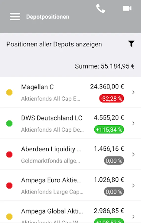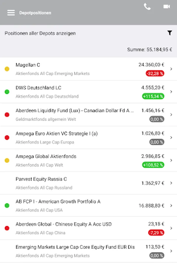 - Factsheets for the individual funds including performance, risk-return, key figures, profit & loss, asset allocation