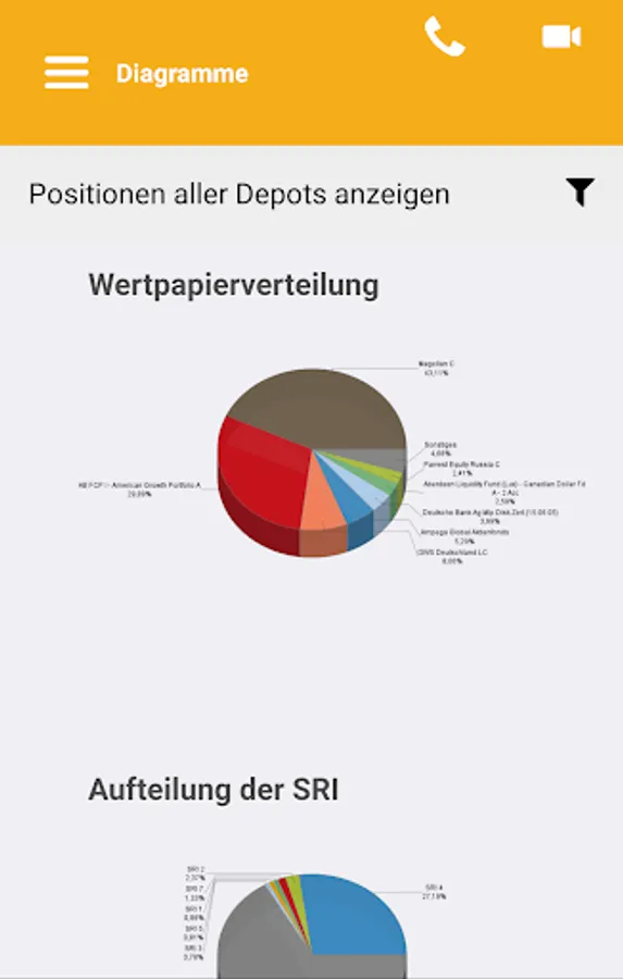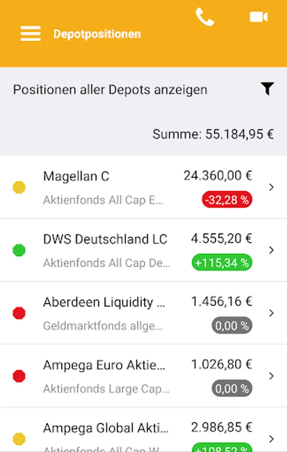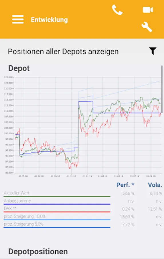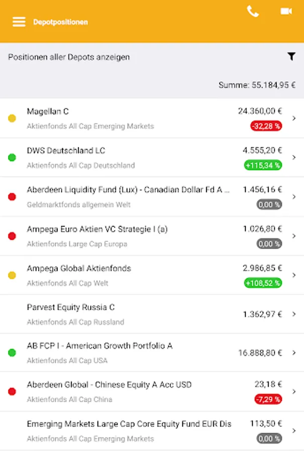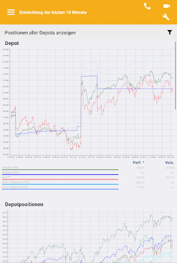 - Factsheets on the individual funds including performance, return risk, key figures, profit and loss, asset allocation
