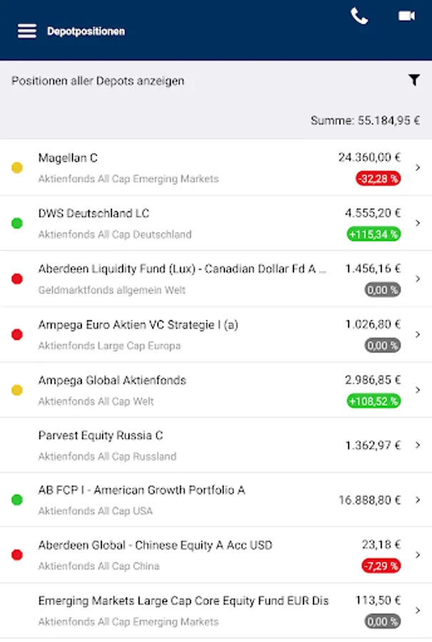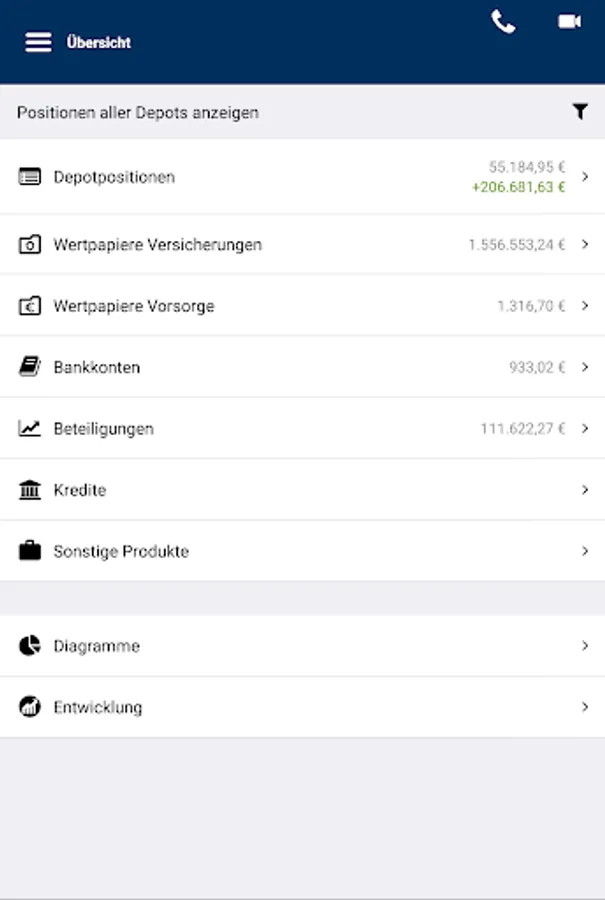 FinanceApp is fast and easy mobile access to the broker service center for customers and consultants. It provides an overview of consolidated customer custody accounts including all fund shares, insurance policies, equity investments and bank accounts (for clients and consultants) as well as relevant customer data (for consultants).