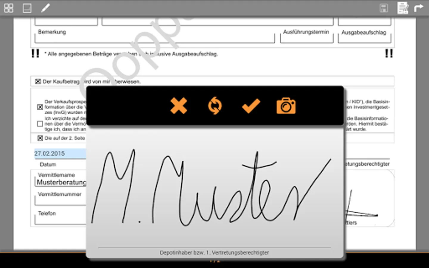 - Submission of order orders directly from the app, confirmation by password or digital signature