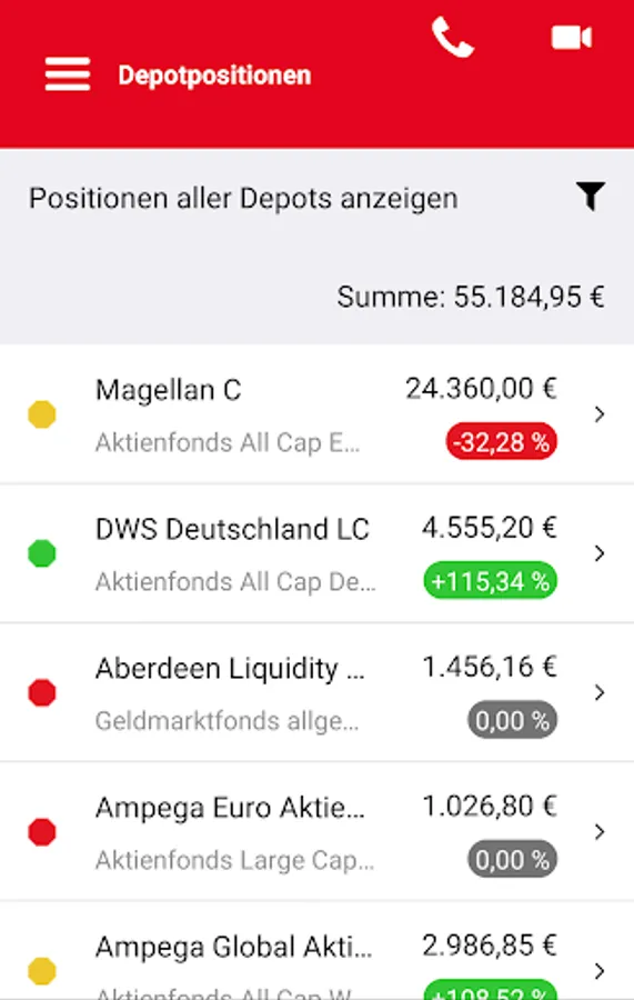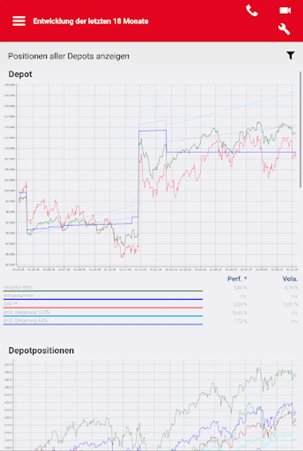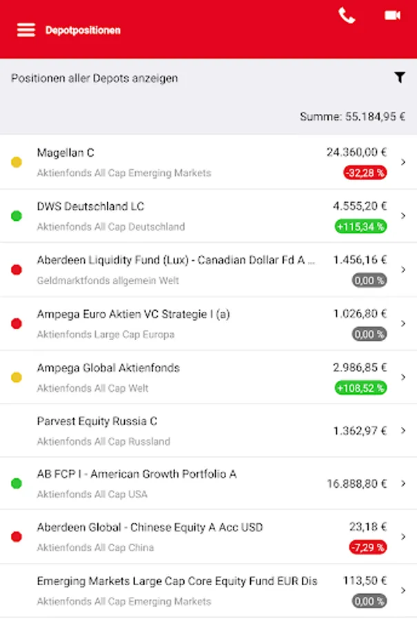 - Factsheets on the individual funds including performance, return risk, key figures, profit and loss, asset allocation