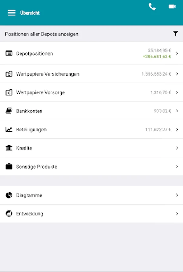 - Consolidated overview of assets including all fund shares, insurance, investments and bank accounts