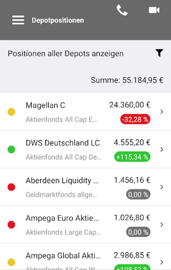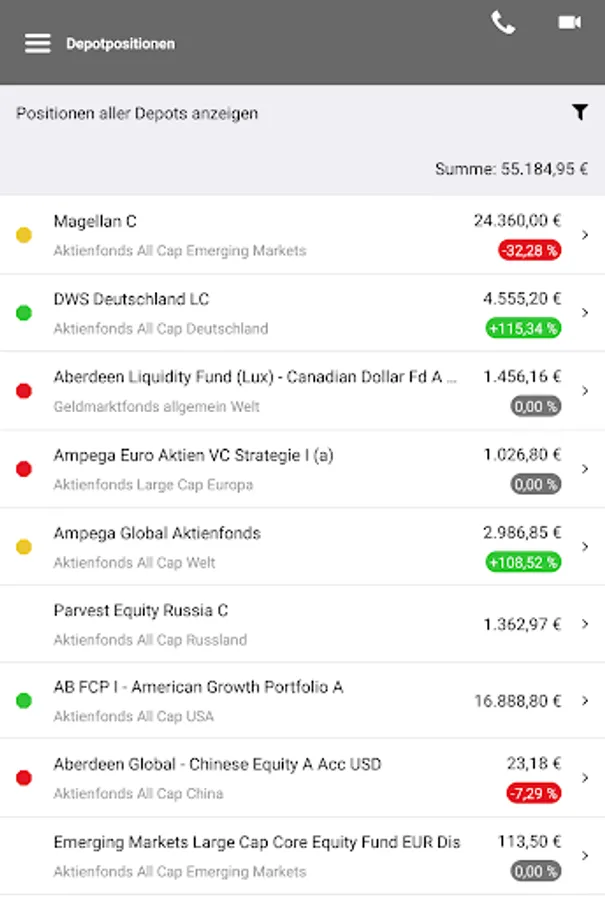 - Factsheets for the individual funds including performance, risk-return, key figures, profit & loss, asset allocation