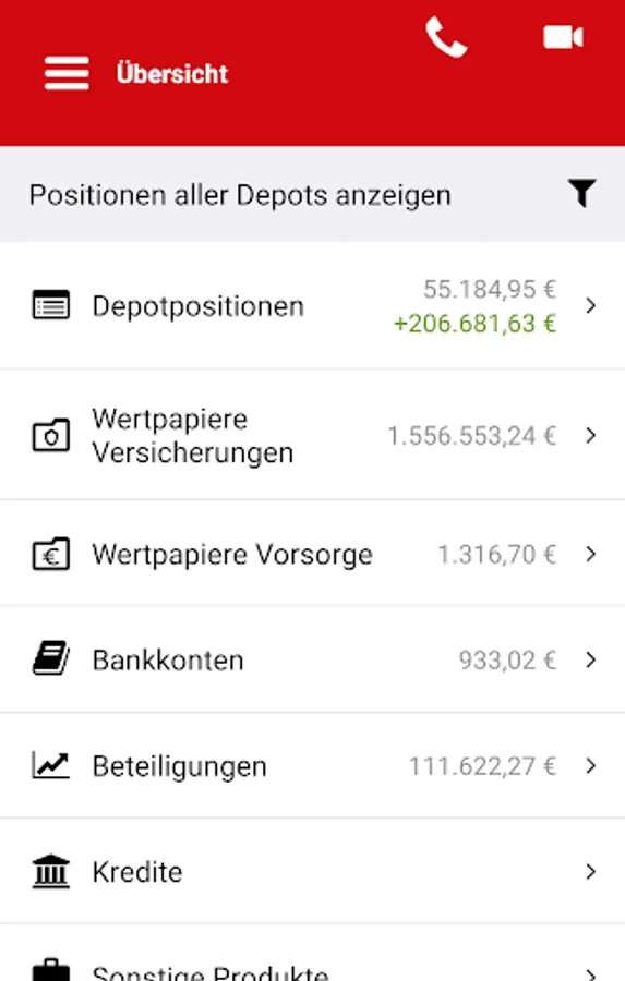 - Consolidated asset overview including all fund shares, insurance, investments and bank accounts