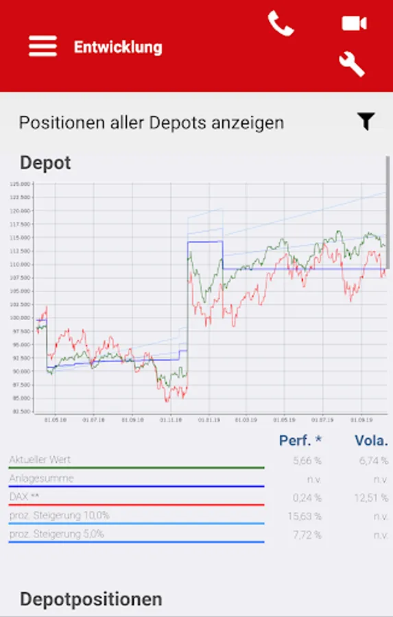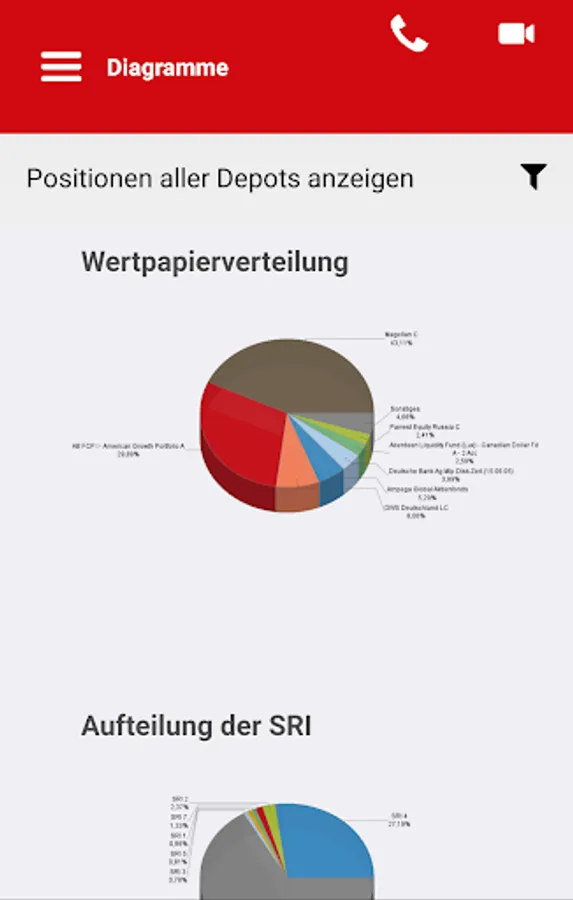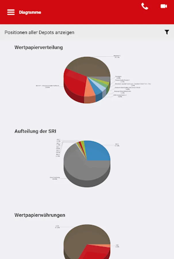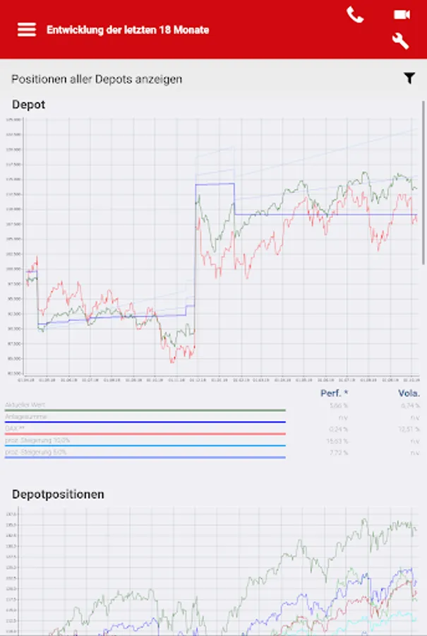 - Factsheets on the individual funds including performance, return risk, key figures, profit and loss, asset allocation