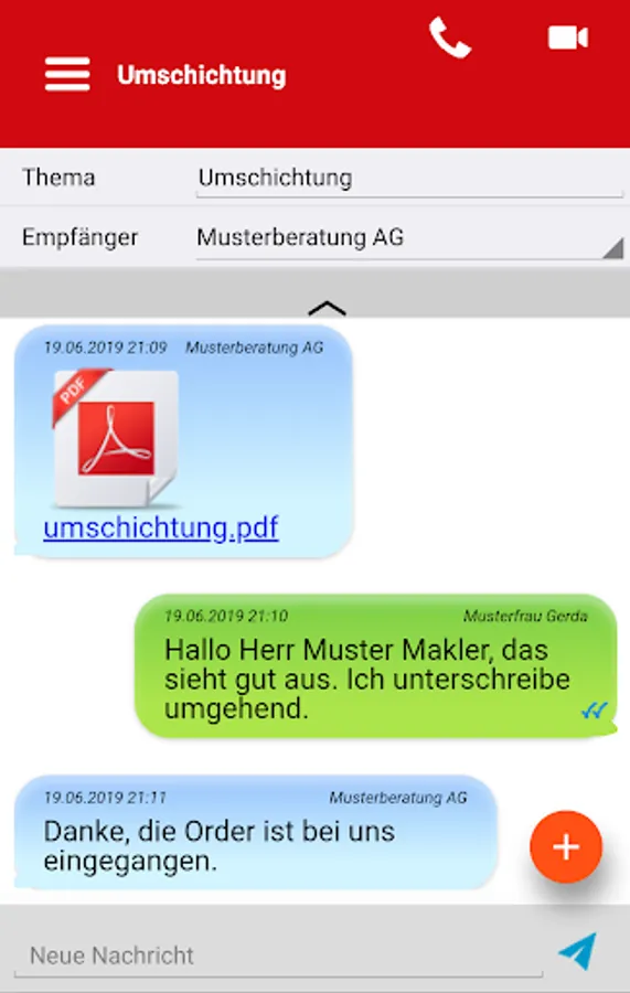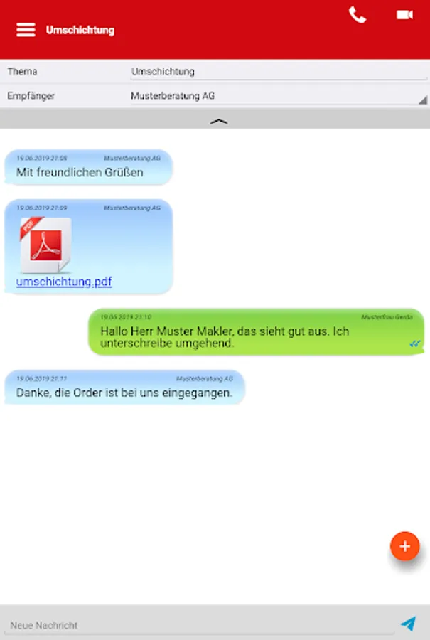 - Submission of orders directly via the app, confirmation by password or digital signature
