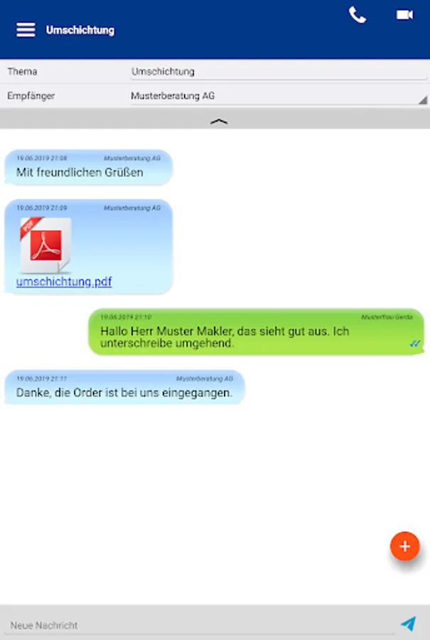- Submission of order orders directly from the app, confirmation by password or digital signature