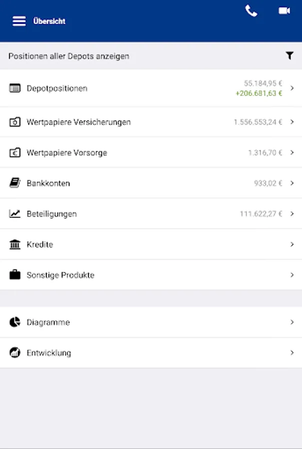 The SVM App is the quick and easy access to the customer portal of SVM Fondsprofi GmbH and thus provides an overview of consolidated customer deposits including all fund shares, investments and bank accounts.