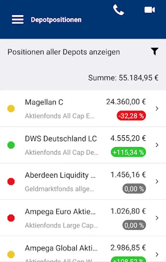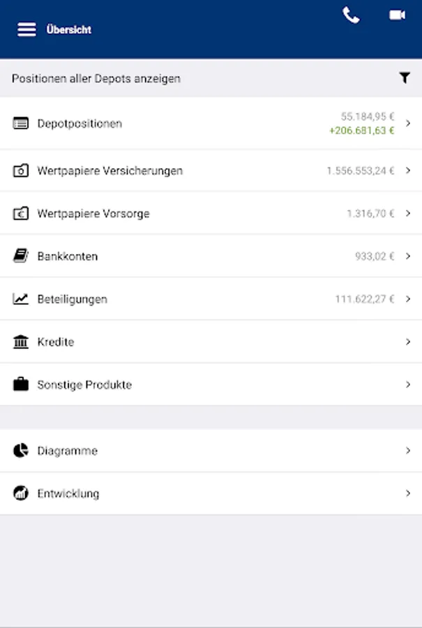 - Consolidated asset overview including all fund shares, participations and bank accounts
