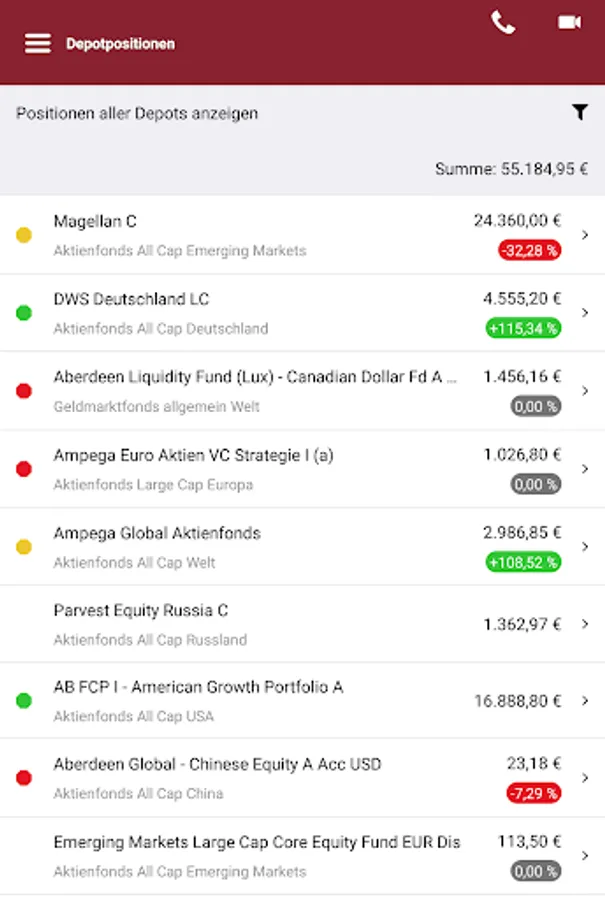- Factsheets for the individual funds including performance, risk-return, key figures, profit & loss, asset allocation