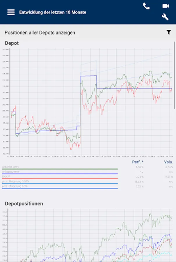- Factsheets on the individual funds including performance, risk of return, key figures, profit & loss, asset allocation