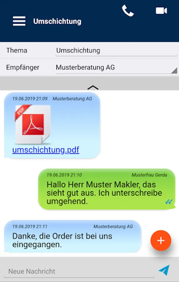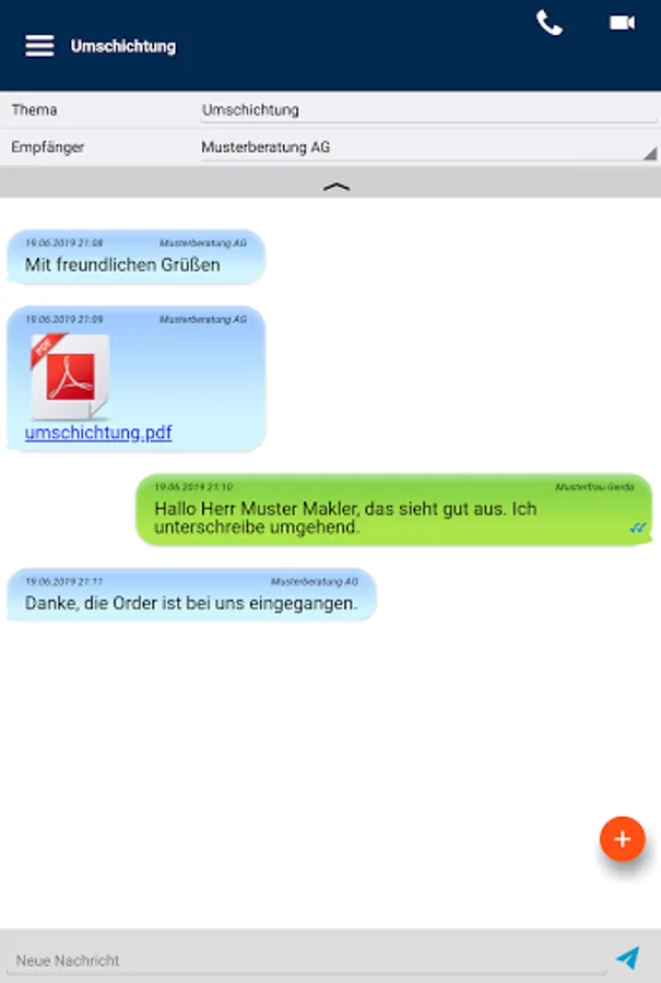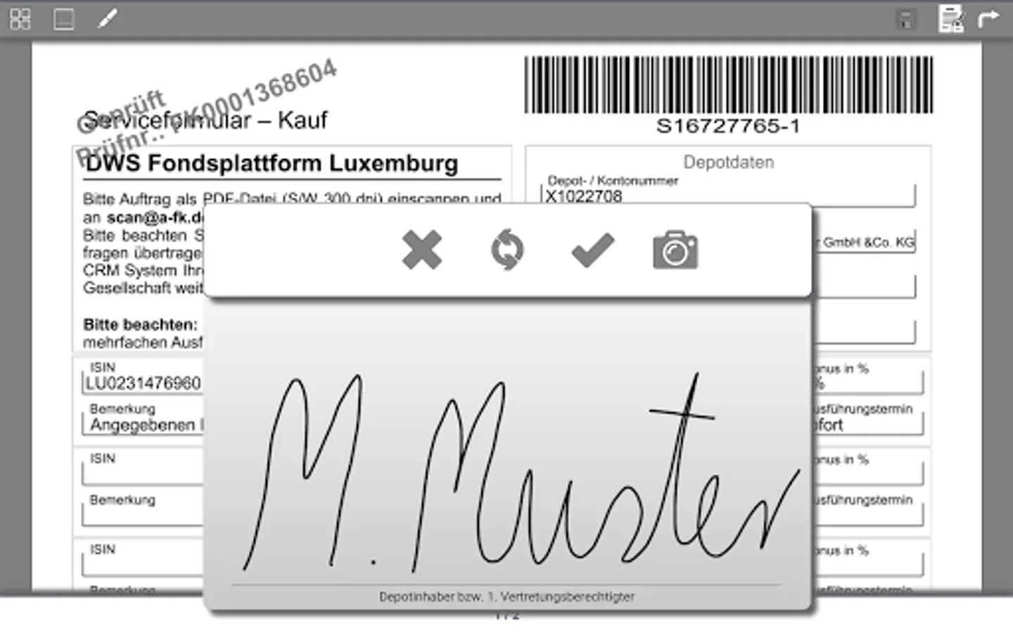 - Submission of order orders directly via the app, confirmation by password or digital signature