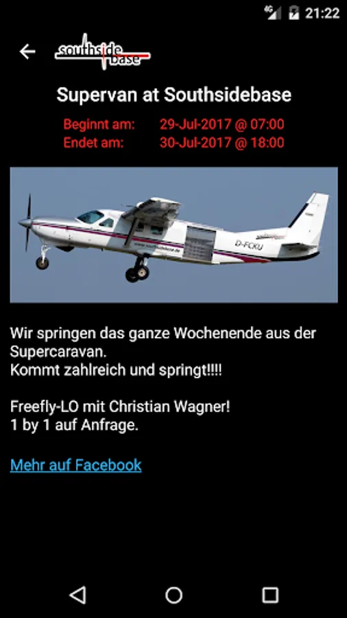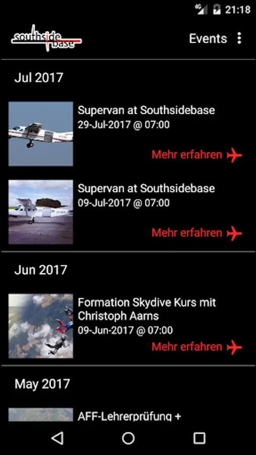 The Skydive App of the Southside Base offers users even more ways to learn about current events at the skydiving center in Schlierstadt (room Würzburg, Frankfurt, Stuttgart, Mannheim).