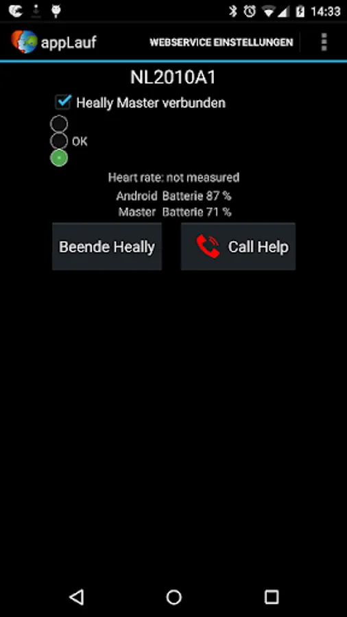 appLauf start button: Starts Heally for Android automatically in Web mode