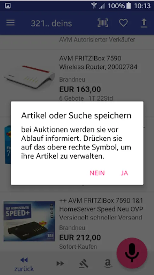 If the saved item is in an auction, you will be informed about 1 hour before the auction ends. You will also receive the current price and the number of bidders displayed on your mobile.