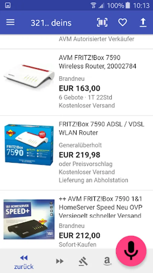 Find and manage with an input via barcode or spoken the best price at the major online retailers.