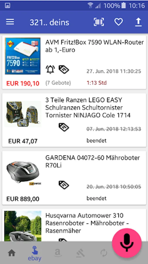 You see in the app all promotions, coupons or discounts on Ebay.de. With new actions you can also be informed by messenger.