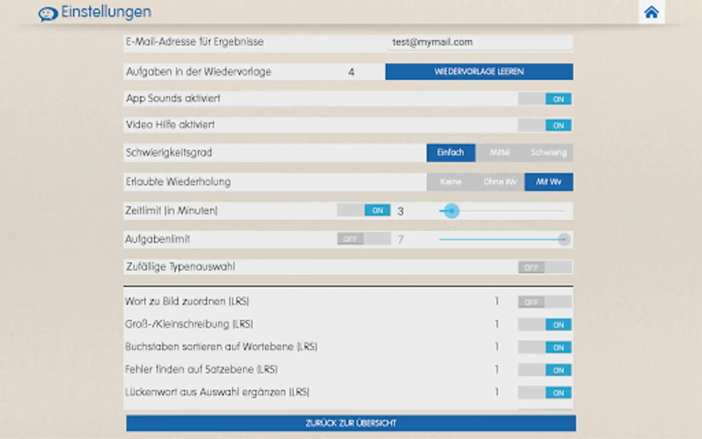 The LRS-app offers children support in literacy learning. You are exercising intensely spelling and improve their written language skills. You can select those that are most relevant for their child or let your child a mixture of all exercises train from the various exercises. The difficulty level can be adjusted individually. These settings can be changed again and again and adapt to the new state. The operation is very simple and self-explanatory.