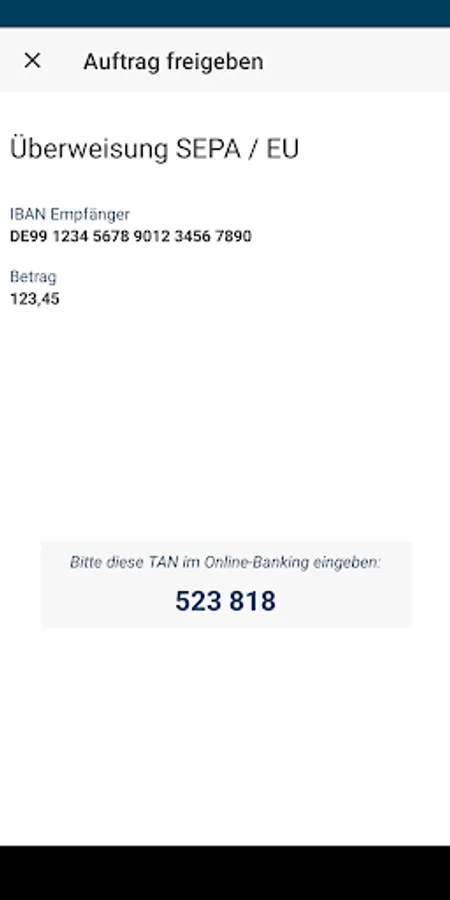 The activeTAN app displays order data (eg IBAN and amount) on your independent smartphone and generates a TAN. This TAN can only be used for the indicated transaction. Your bank executes the order only with this TAN, so your account remains optimally protected.
