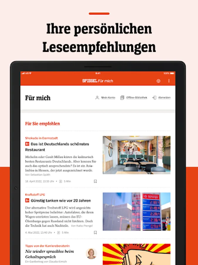 Here you will find current news, headlines from politics and the world, background information and the digital weekly SPIEGEL clearly arranged in one app.