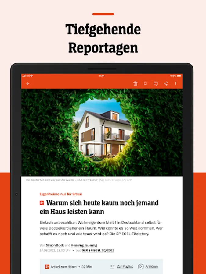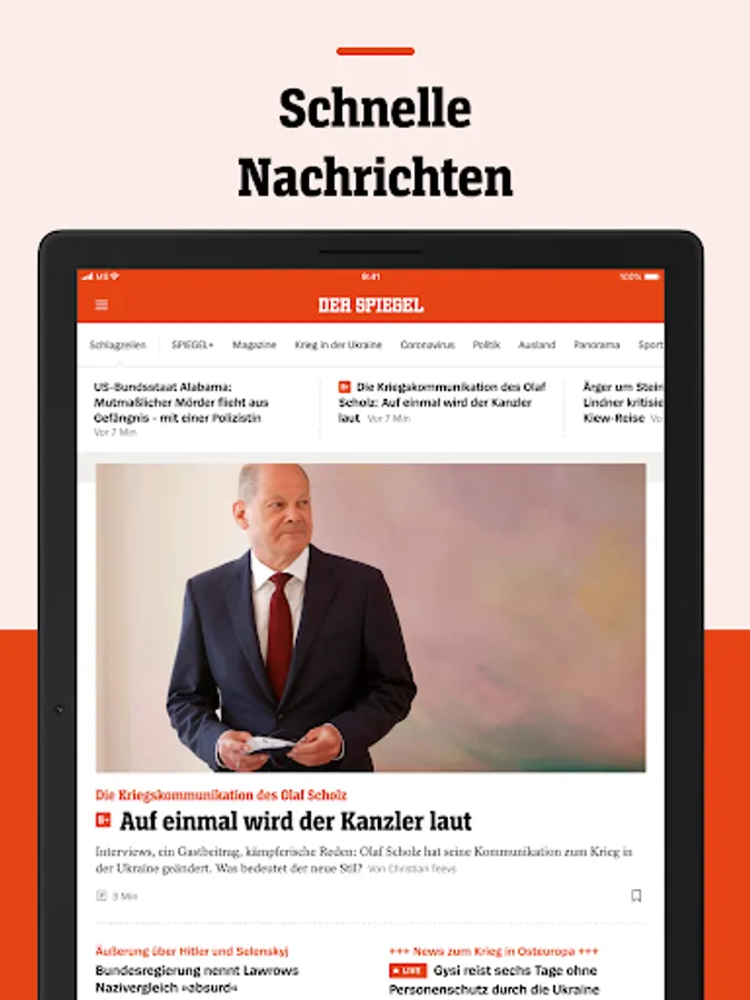 Feedback, ideas, wishes? Please contact us at app@spiegel.de. Our aim is to constantly improve our products and content such as current news, headlines and news from politics, business, sport and culture from all over the world. SPIEGEL+ or the ad-free reading option are processed via your Google Play account and paid for with purchase confirmation. 24 hours before expiry, the subscription is automatically extended by one month. The SPIEGEL+ subscription price includes €15.60 for the SPIEGEL PDF/ePaper. You can cancel any of these subscriptions at any time in your Google Play account settings. In order to use SPIEGEL+ or the ad-free reading option outside of this app, you must link the respective subscription to a SPIEGEL ID account immediately after purchase. By purchasing, you accept our General Terms and Conditions (https://www.spiegel.de/USE Conditions) and our Privacy Policy (https://spiegel.de/datenschutz-spiegel).