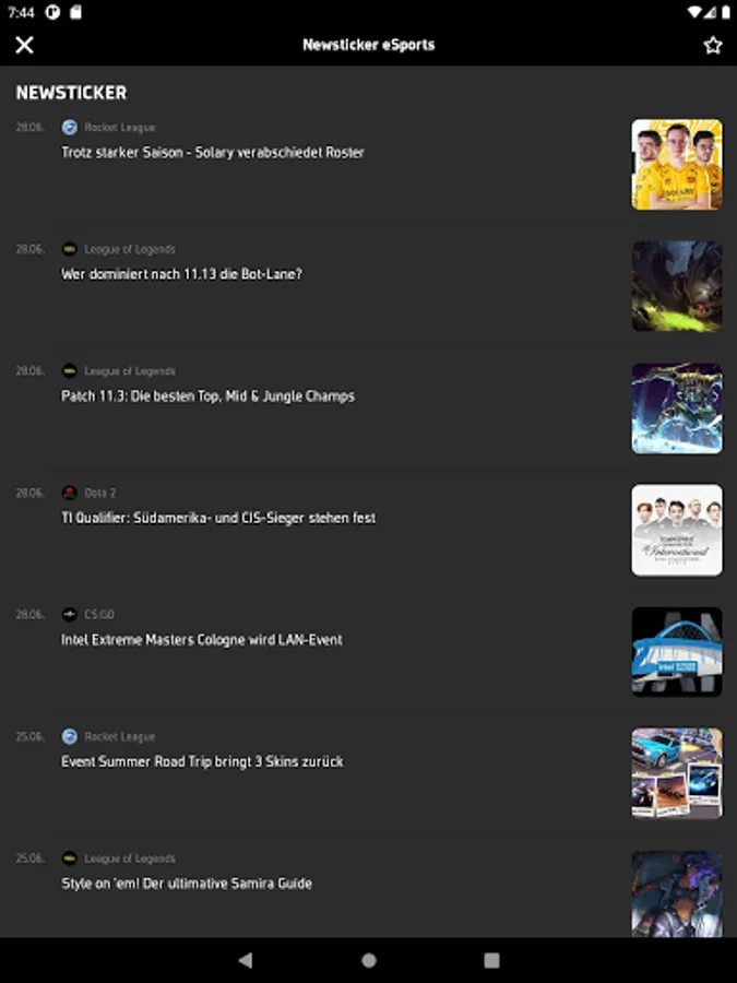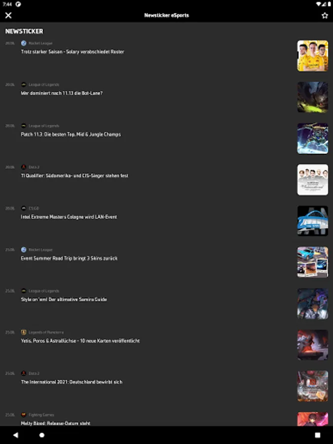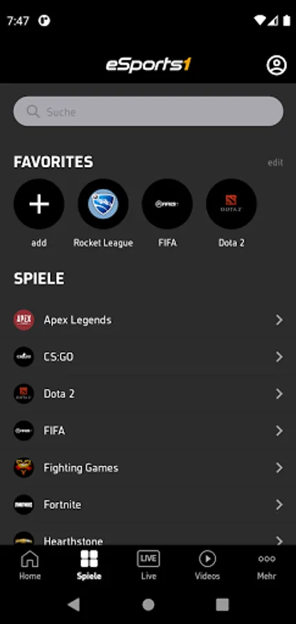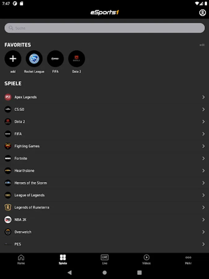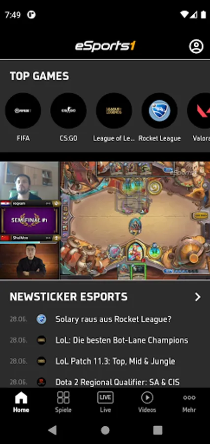 Relaunch: We have redesigned our eSports app for you! Download the app for free and let us convince you of our new dark mode, even more content and the 24/7 live stream. Personalize the app according to your wishes by adding your favorite games as favorites. So you don't miss any news and you are always up to date! In addition to live results, you now also have a large number of statistics available, so that you are even better informed about the game. We also offer you many other magazines, highlights, articles and analyzes on 19 popular games such as CS: GO, League of Legends, Valorant or FIFA21. Be even closer to eSports with the new eSPORTS1 app!