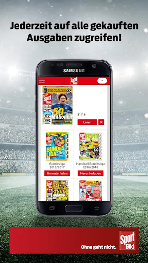 With this app you can buy the latest issue of SPORT BILD for 1.99 euros. retained all editions purchased in the app, so you can browse at a later date at any time in older editions.