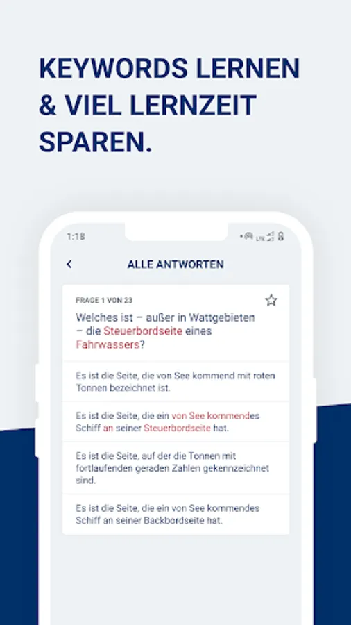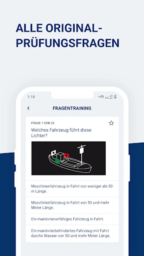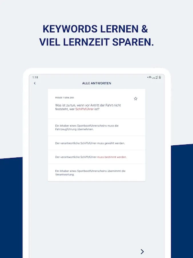 The app contains the original exam questionnaire. If you get Questionnaire 4 in the boat test, it is identical to Questionnaire 4 in the online course. Find out beforehand exactly how the exam works.