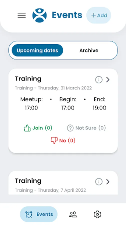 With Sporteamate you can set simple appointments and recurring trainings. Your teammates can accept and decline and everyone always has an overview of who will be there next time.