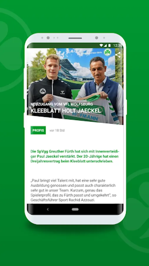 With the official app of SpVgg Greuther Fürth for smartphones you have your shamrock always in your pocket and never miss a single message of your favorite club. And the best: The app is available for free.