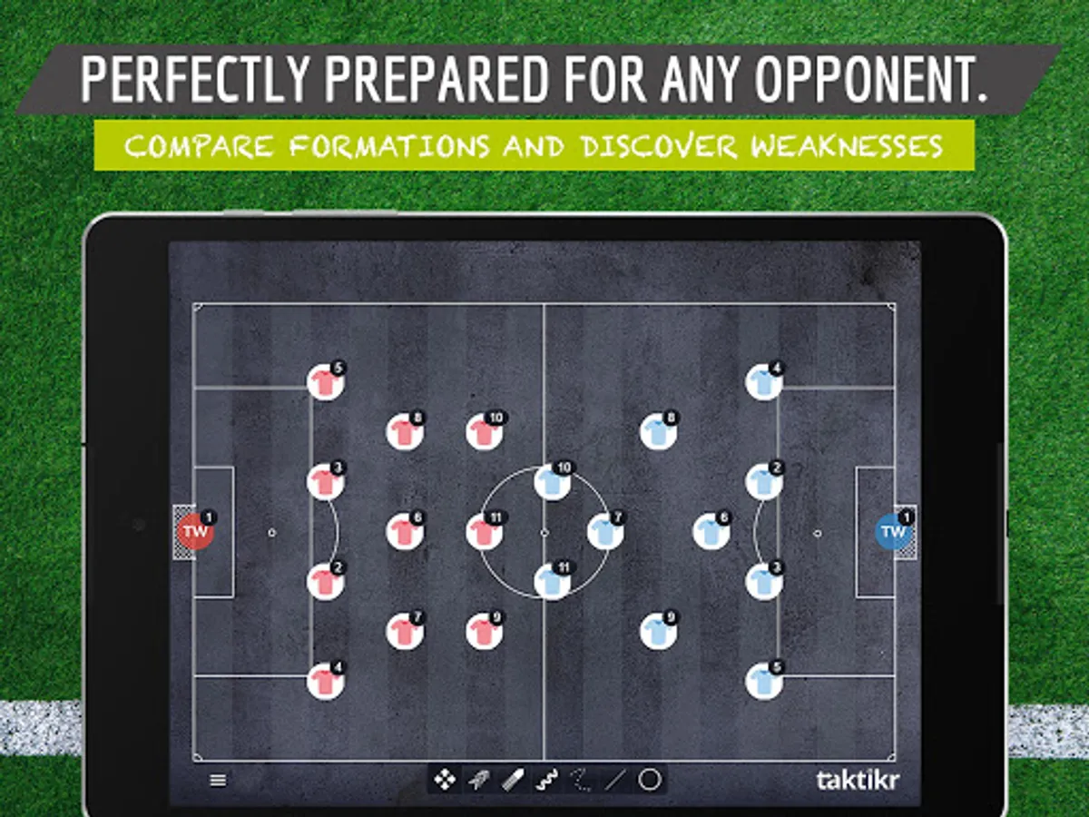 - Analyse and compare your own preferred formation with the one of your opponent on the same pitch for the perfect match-lineup