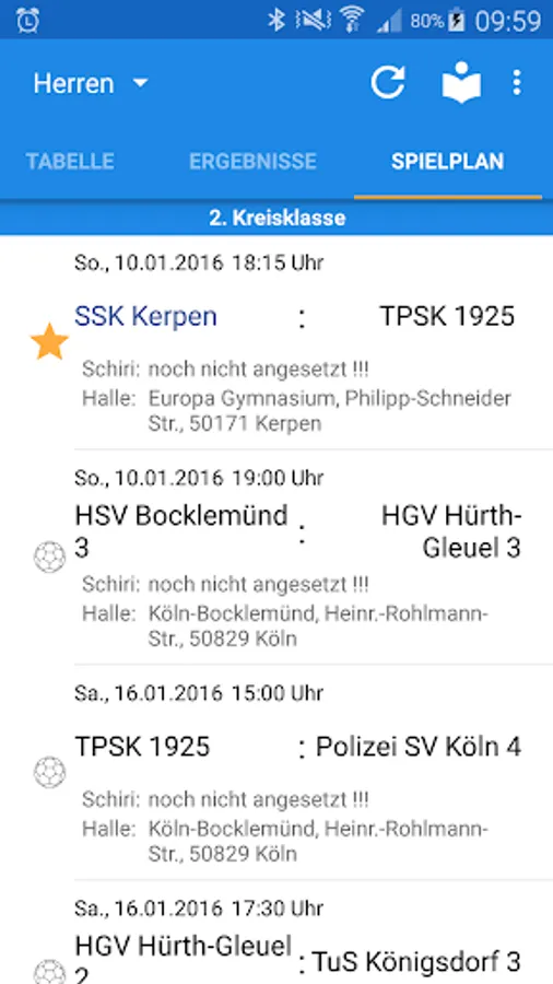 - Match Calendar to display the next home games all SSK Kerpen Teams