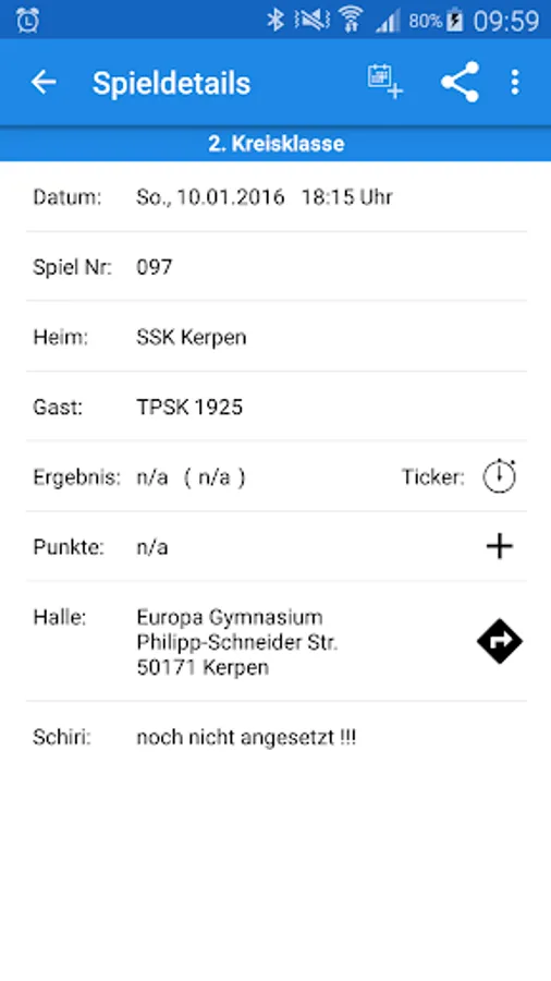 With this app you have scores, results and fixtures of all SSK Kerpen teams always in view.