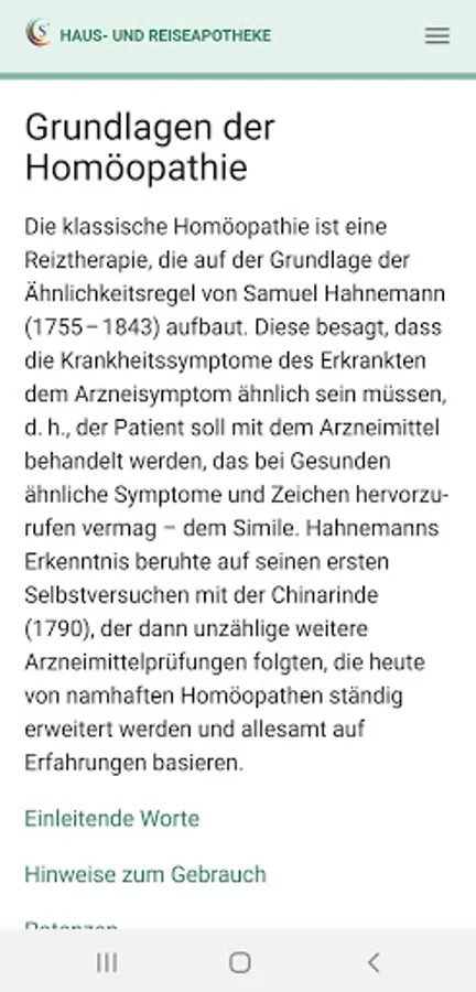 Extensive basics of homeopathy supplement the app with the topics of potencies, choice of medicine, administration of medicine, accompanying measures, strengthening of the immune system and limits of homeopathy.
